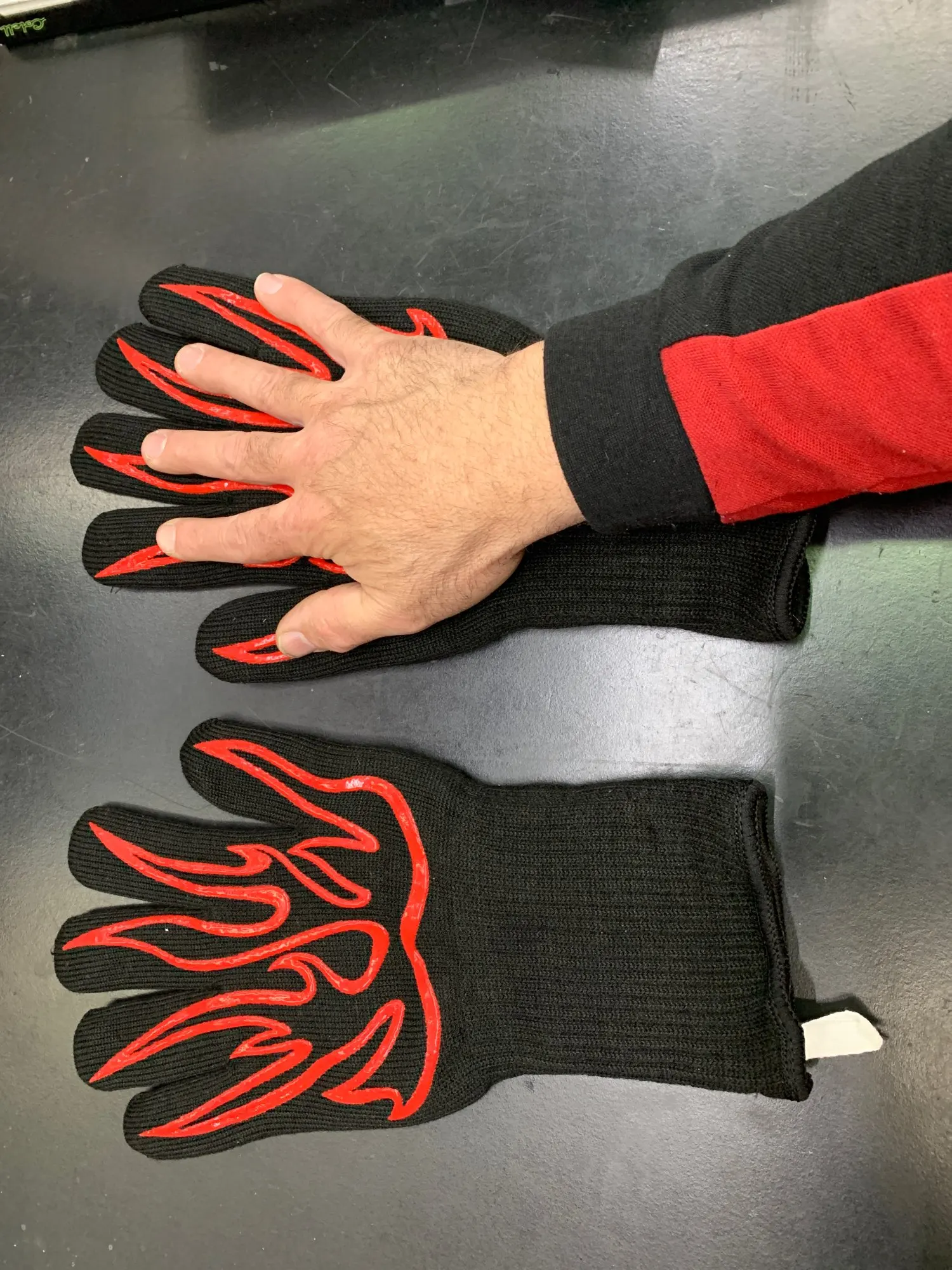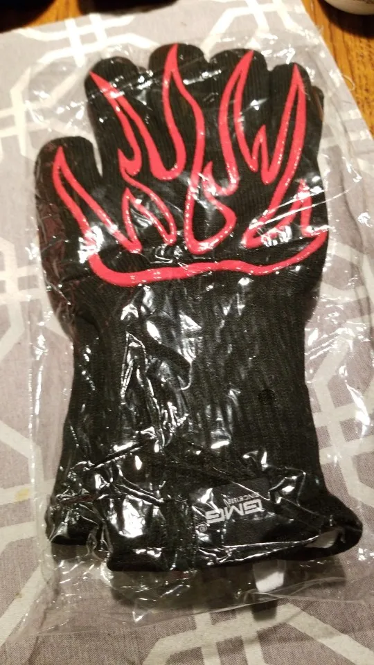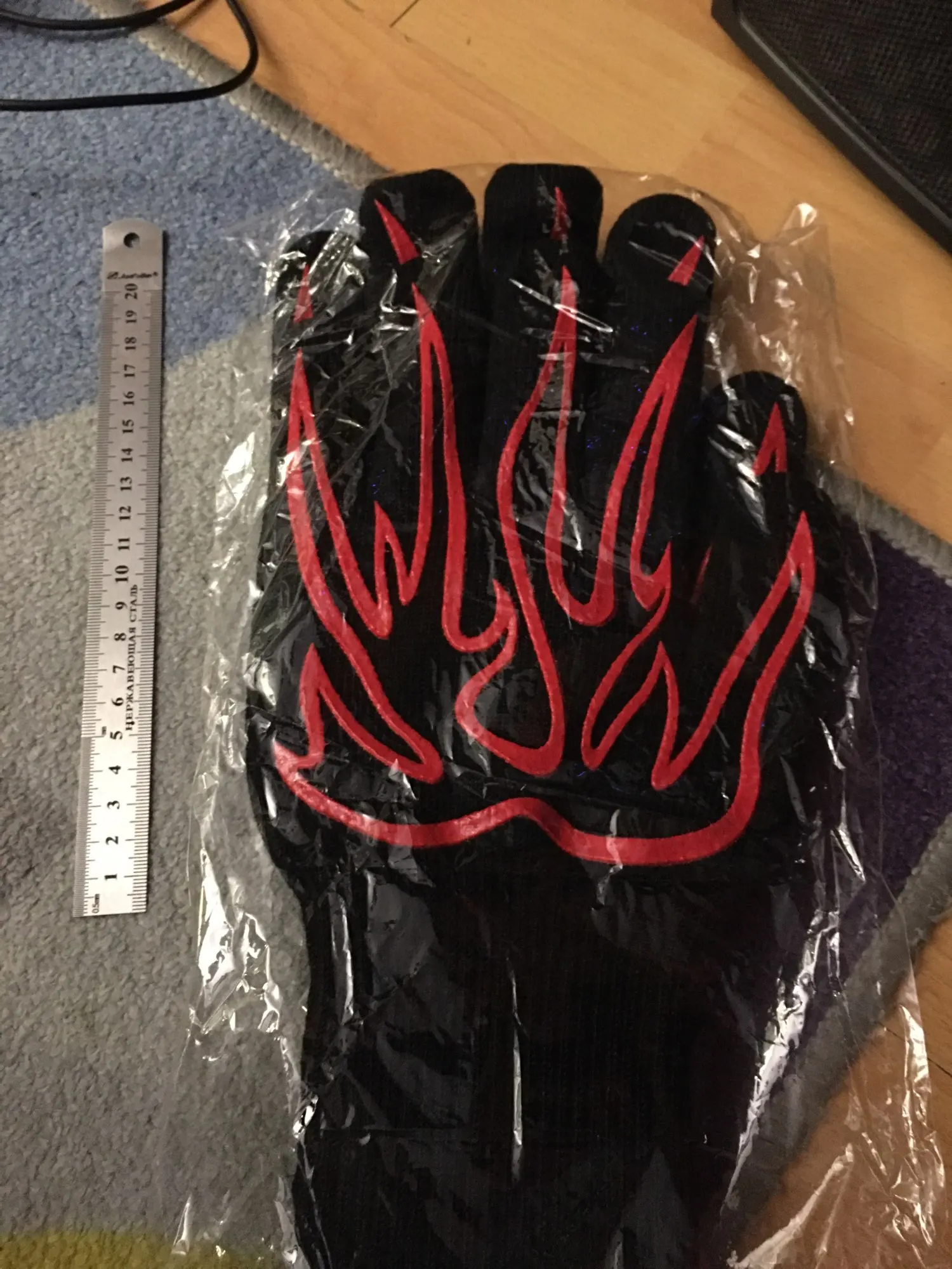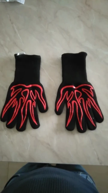 Перчатки - огонь! Качество отличное, швы идеальные. Сразу протестировала в духовке на 200 градусов и хоть бы хны. Муж будет тестировать в выходные. Единственное - перчатки не на очень крупную руку.