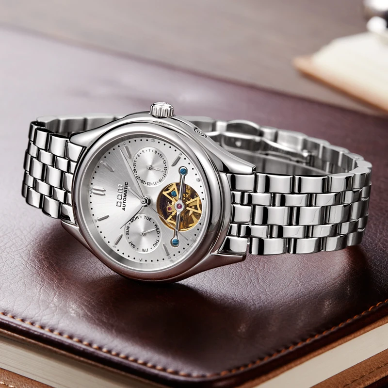 Часы DOM Мужские механические, брендовые Роскошные водонепроницаемые спортивные наручные часы из нержавеющей стали с турбийоном