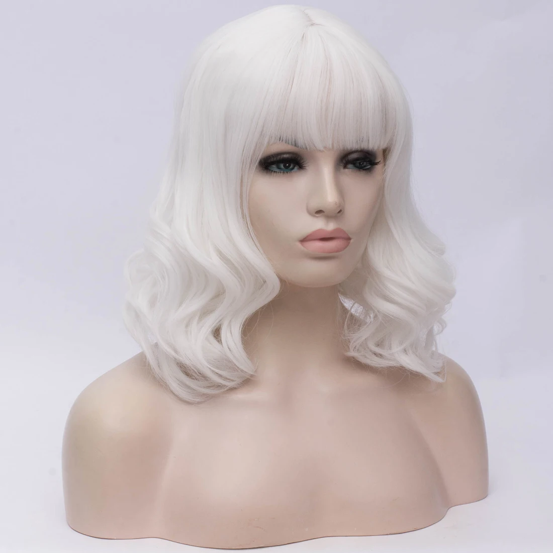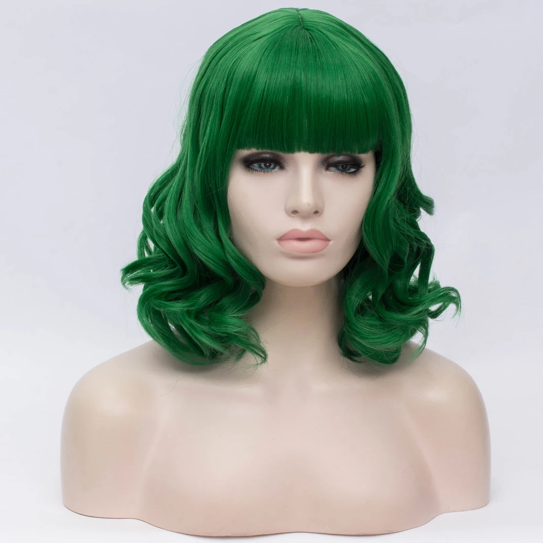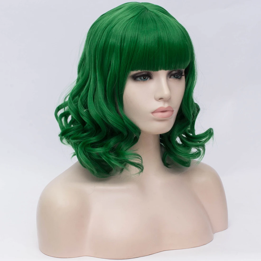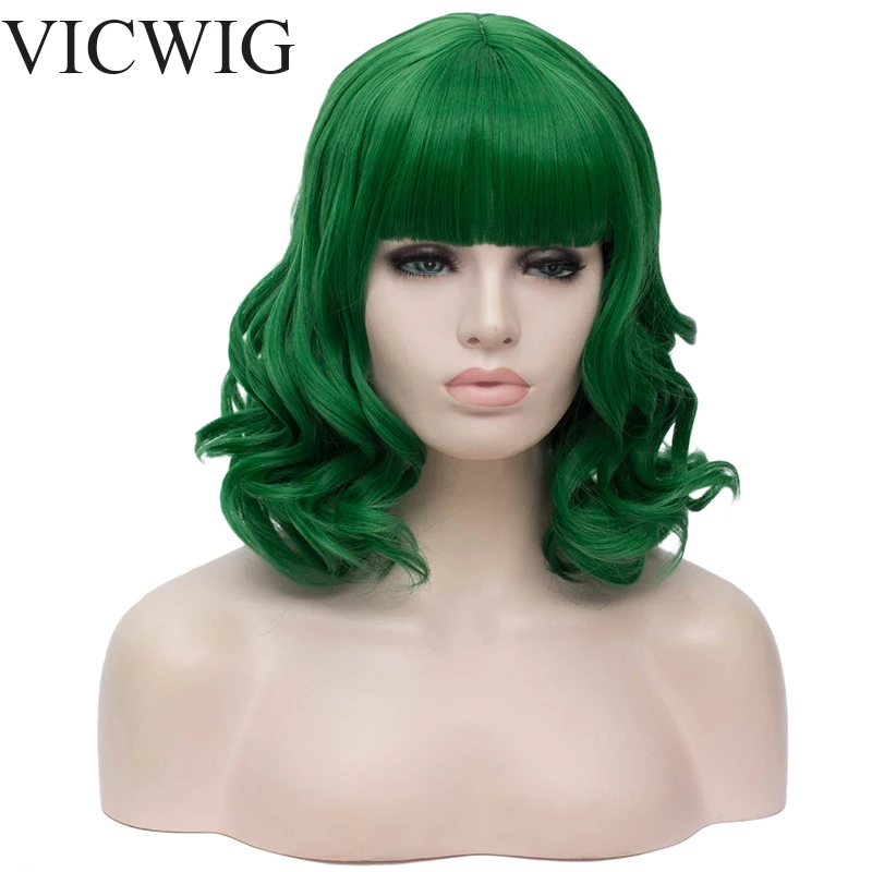VICWIG синтетические Короткие Зеленые, красные, светлые, белые, розовые, черные парики для женщин волнистый парик для косплея с челкой, термостойкие волосы