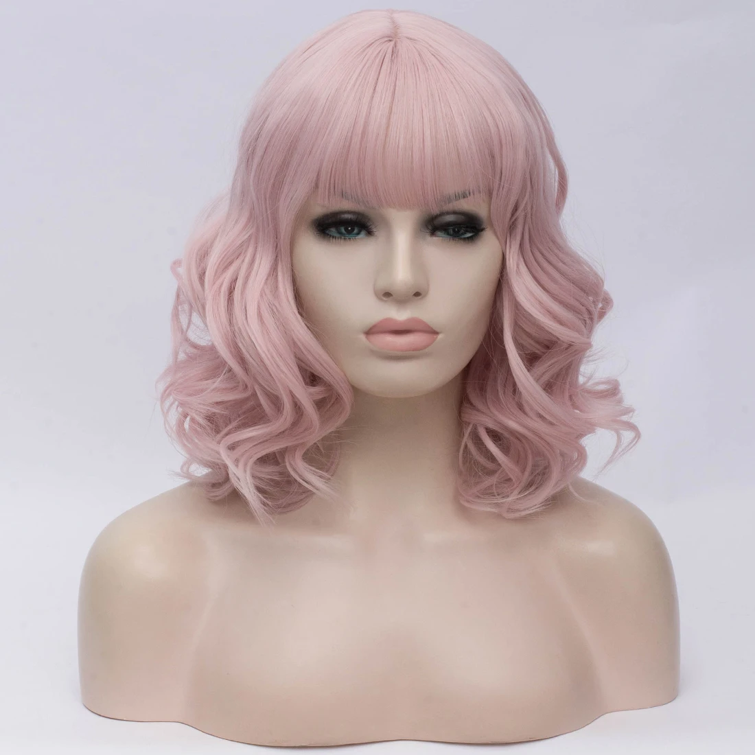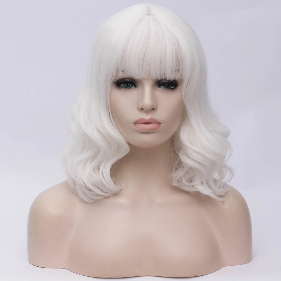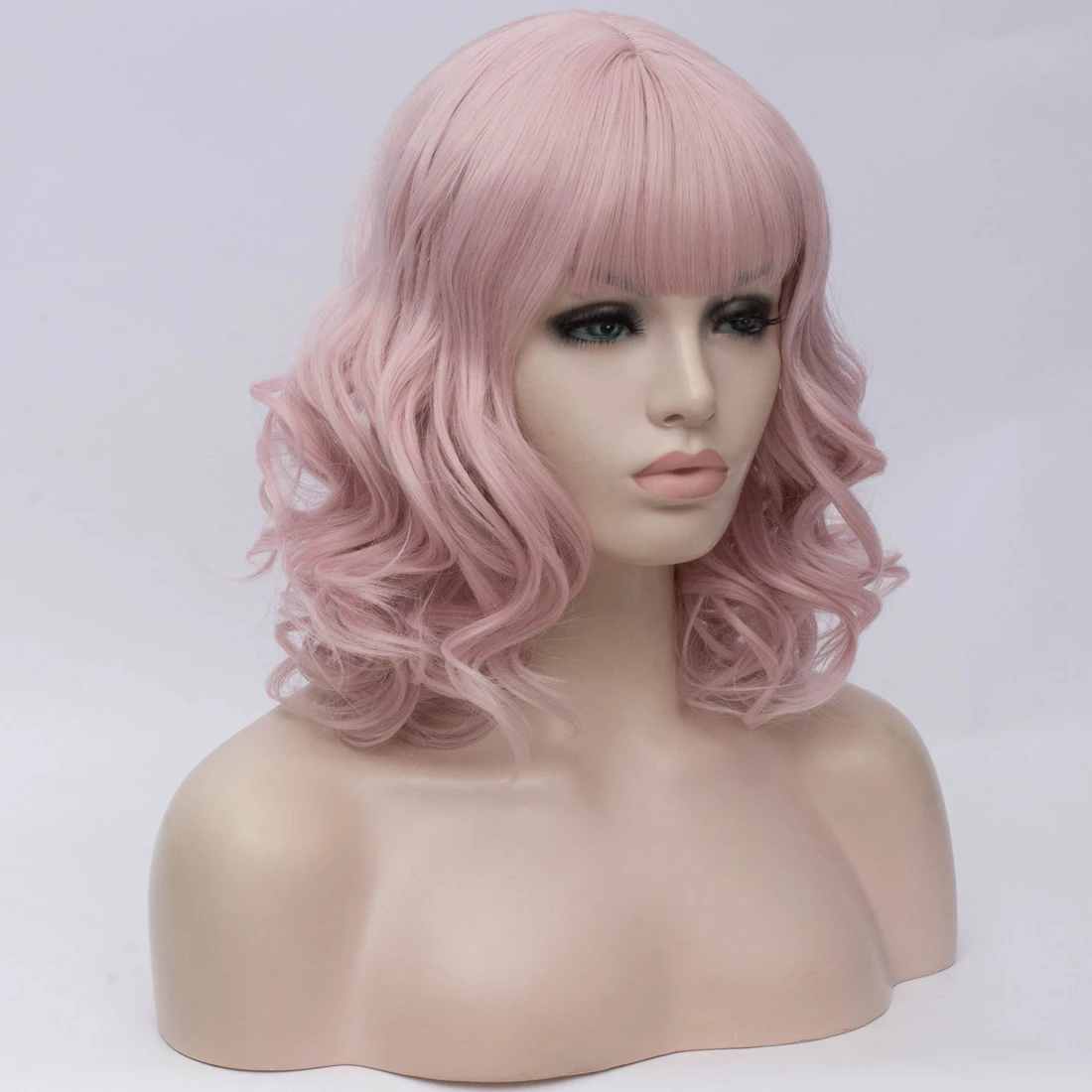 VICWIG синтетические Короткие Зеленые, красные, светлые, белые, розовые, черные парики для женщин волнистый парик для косплея с челкой, термостойкие волосы