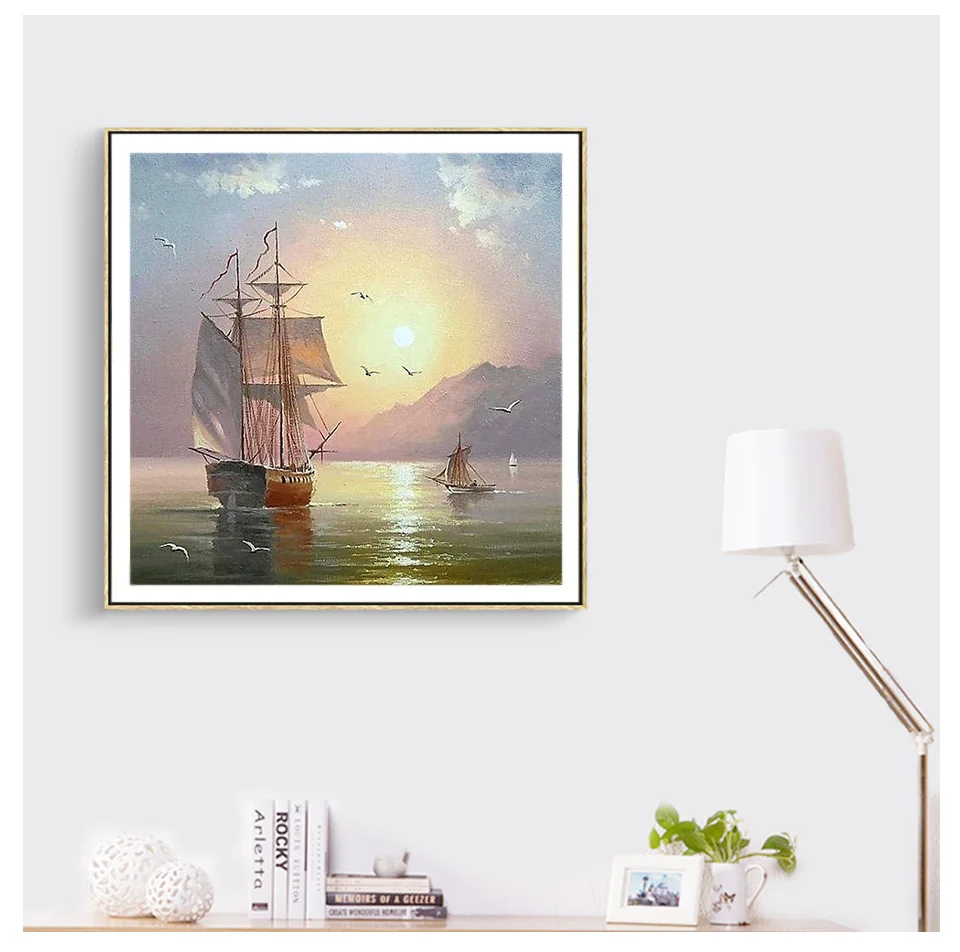 Картина из квадратных страз 5D сделай сам, алмазная вышивка с парусником, пейзаж, картина стразы, Декор для дома