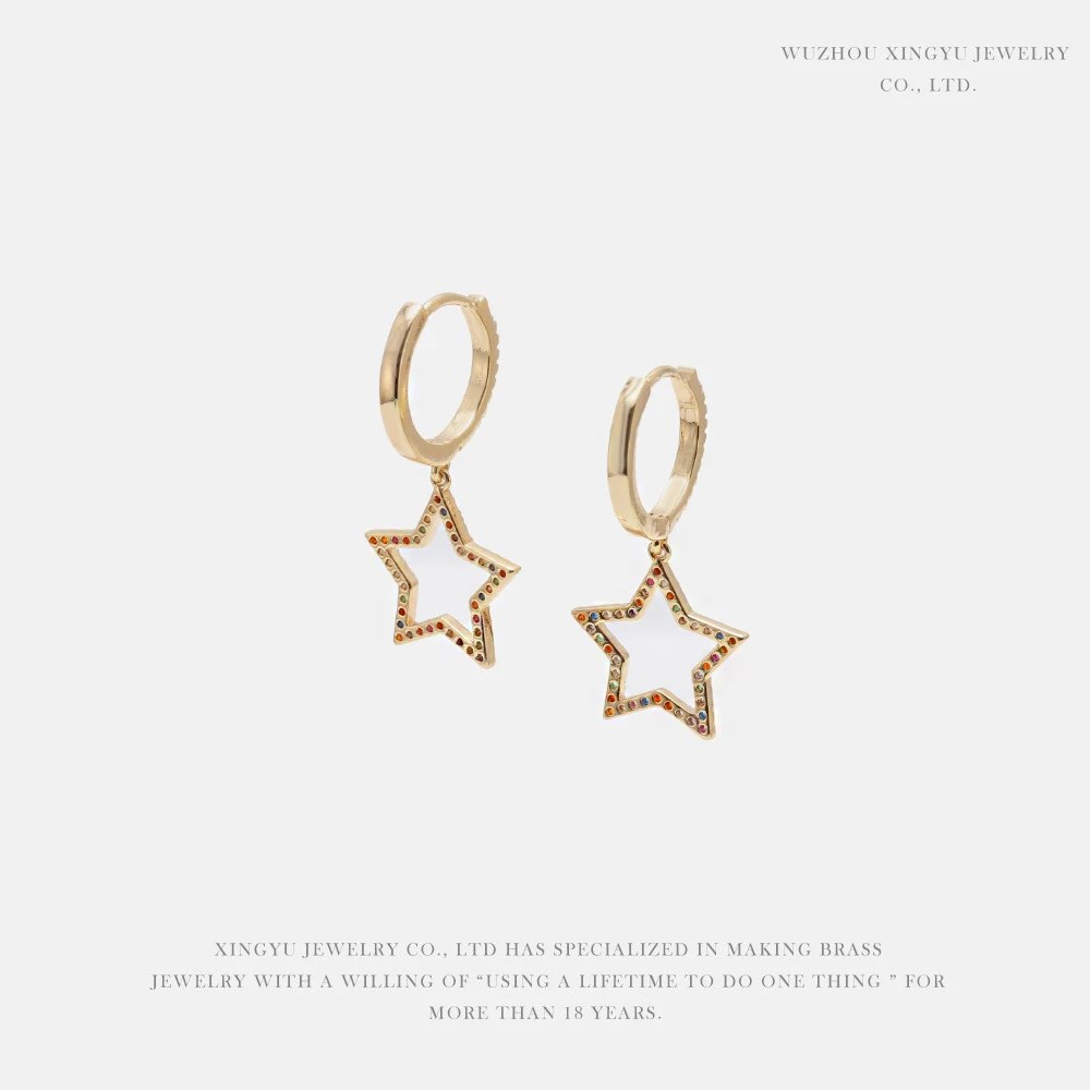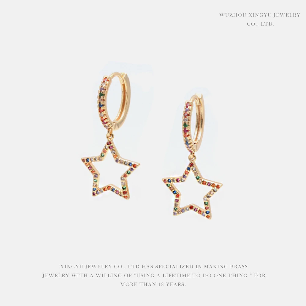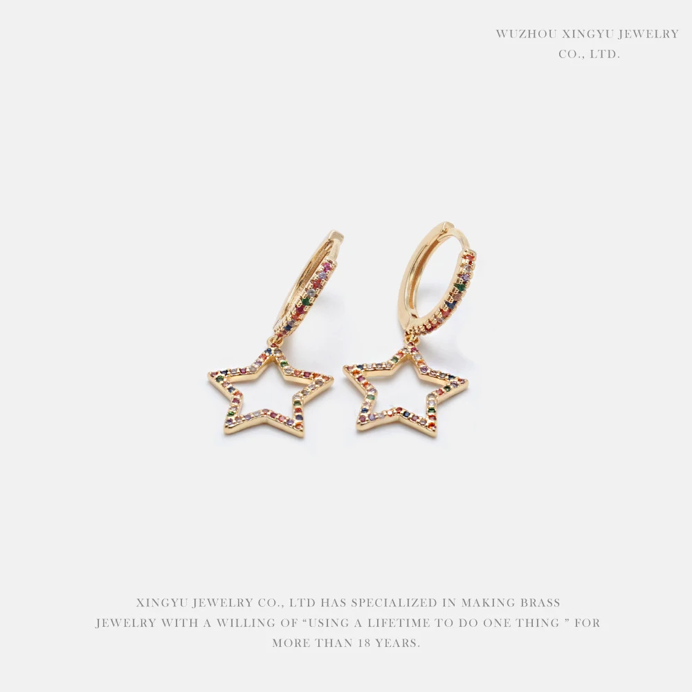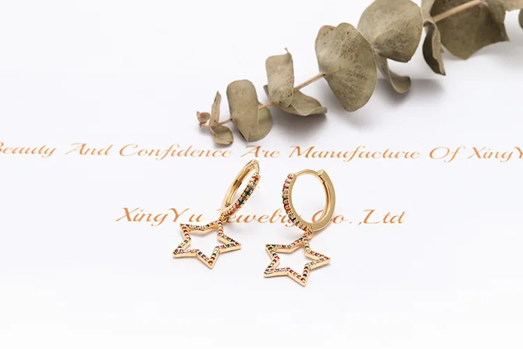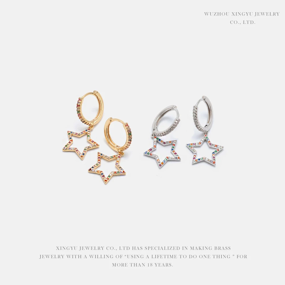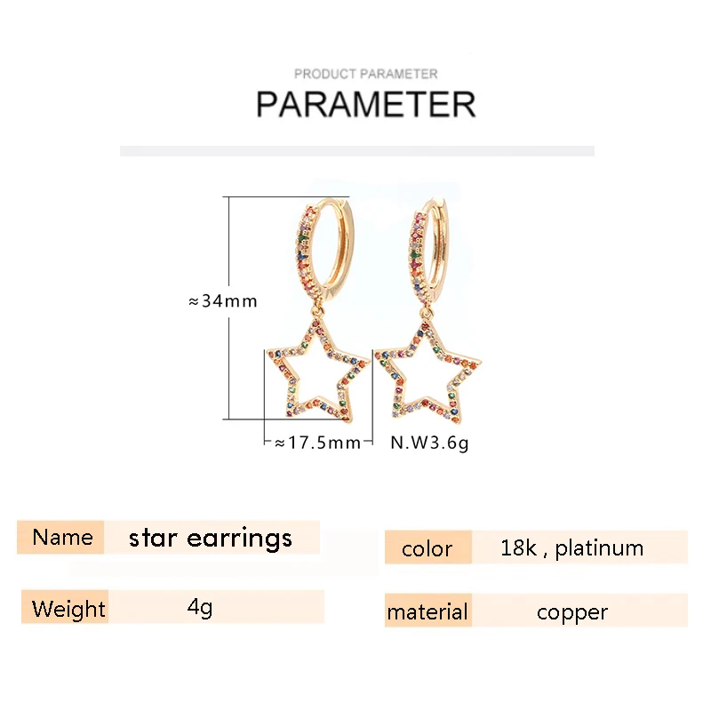 Серьги-гвоздики в виде звезд и Луны, с цирконом