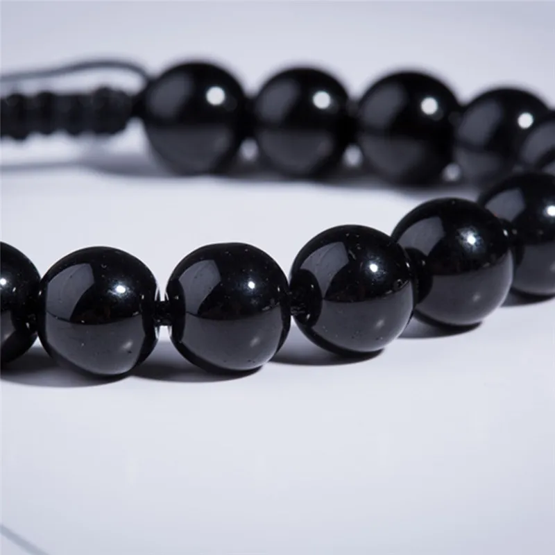 1 шт. регулируемый браслет из обсидиана 10 мм, браслет для здоровья, браслет для похудения, круглый черный браслет для похудения