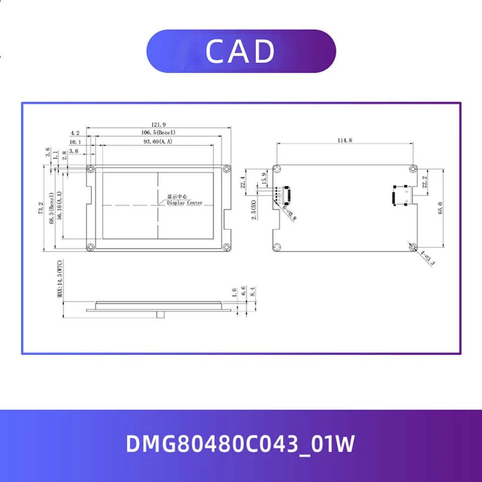 Интеллектуальный дисплей Dwin T5L HMI, ЖК-модуль DMG80480C043_01W 02W 4,3 "IPS 800X48 0, резистивная емкостная сенсорная панель