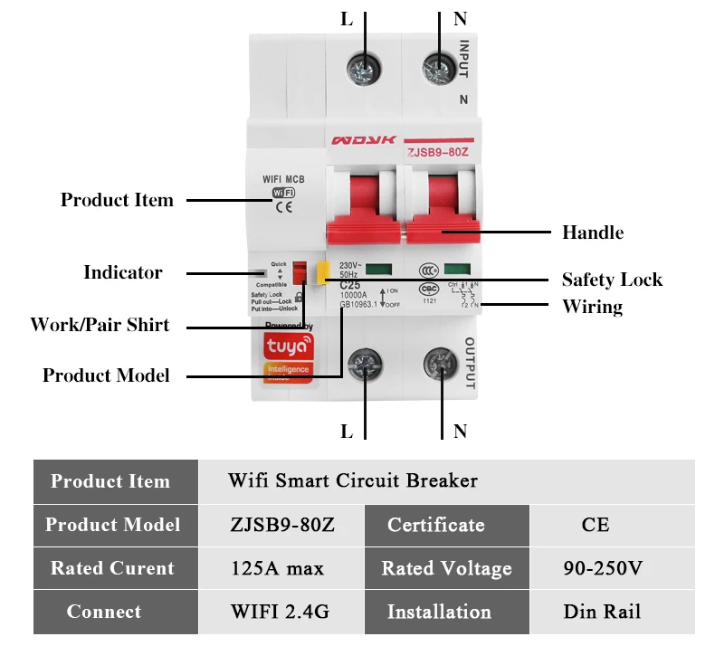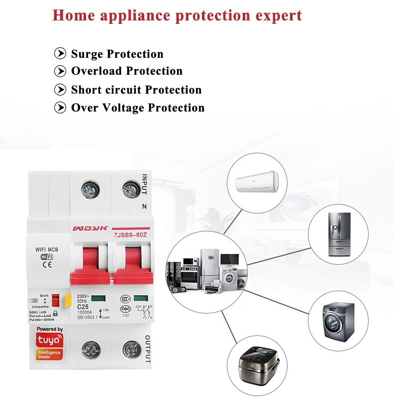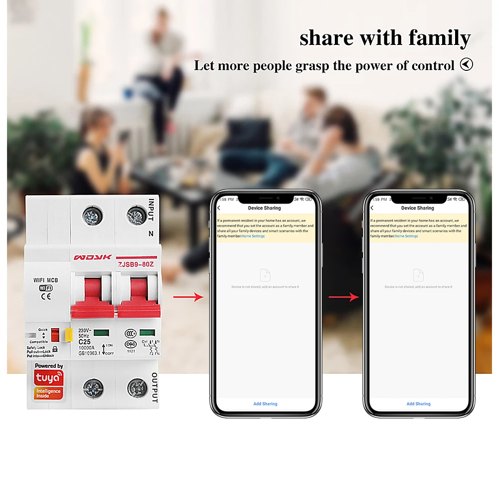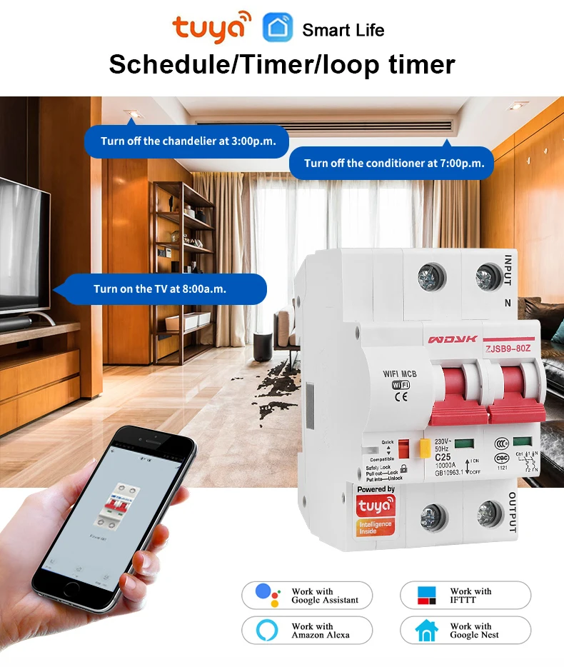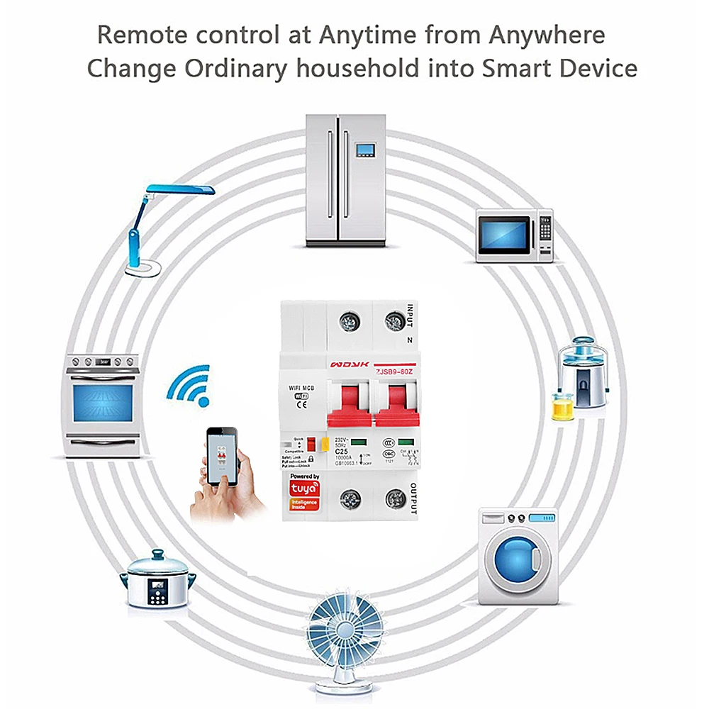 Автоматический выключатель Smart Life(tuya), приложение 2p, Wi-Fi, защита от перегрузки и короткого замыкания, поддержка Alexa, google home, для умного дома