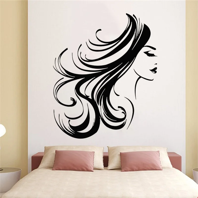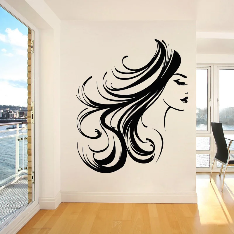 Девушка лицо наклейка на стену женщина длинные волосы прическа Макияж комната салон красоты интерьера виниловые наклейки на окна украшение для спальни
