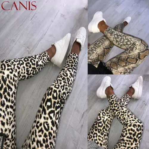 Женские леопардовые леггинсы с высокой талией и змеиным принтом