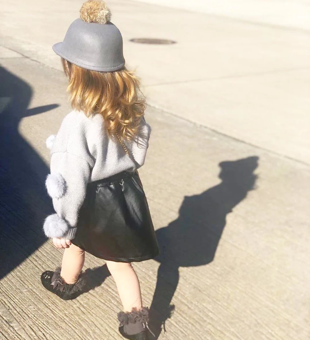 Осенние комплекты одежды pudcoco для маленьких девочек, вязаные топы с длинными рукавами и меховыми помпонами, свитер + юбка с пуговицами, теплые комплекты одежды, От 1 до 6 лет