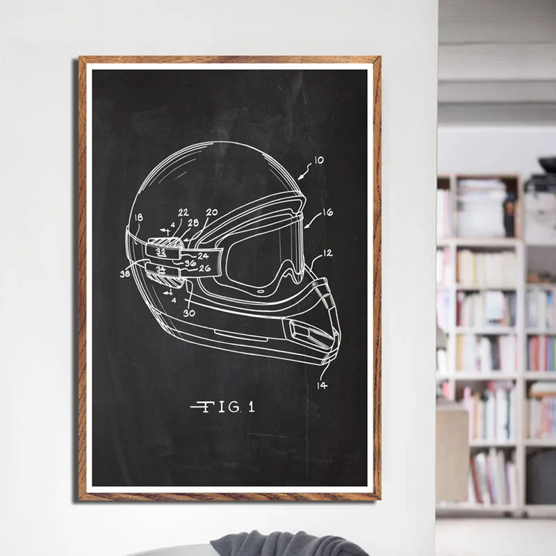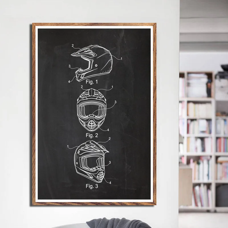 Мотоцикл мотокросс шлем схема Художественная Картина на холсте постер настенный Декор для дома Квадратные картины