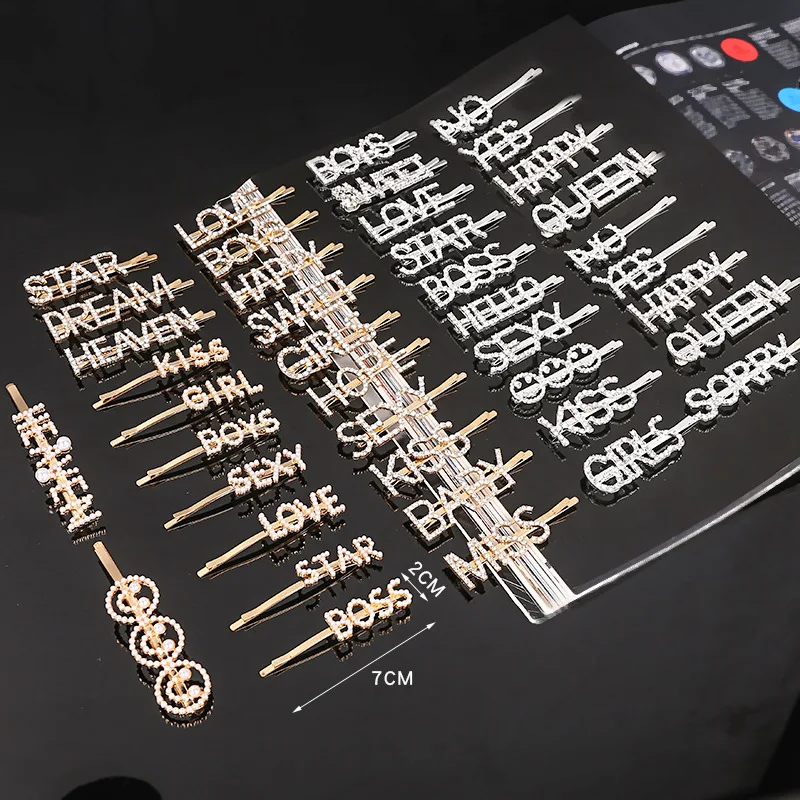 Заколки для женщин, для стразы, с буквами, заколки невидимки для волос