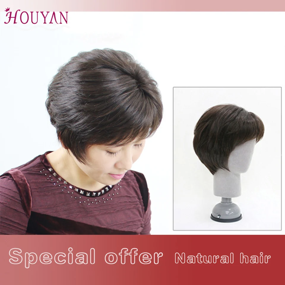 Парики ручной работы HOUYAN, короткие прямые волосы, синтетический парик, подходит для белых волос и выпадения волос для женщин среднего и пожилого возраста