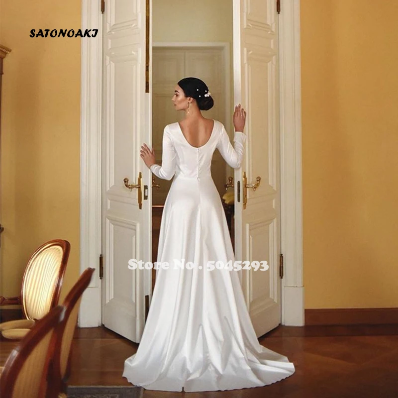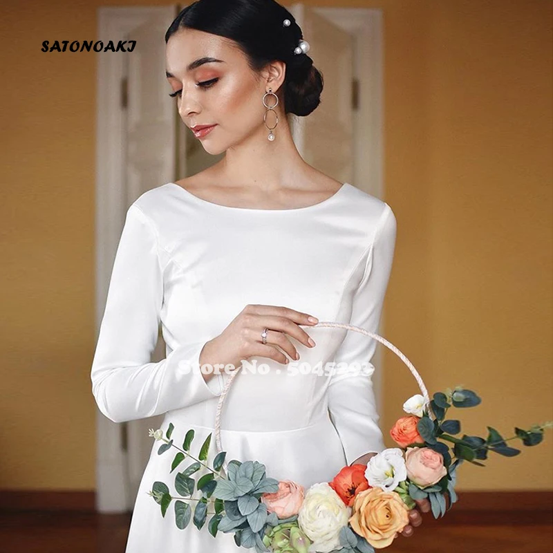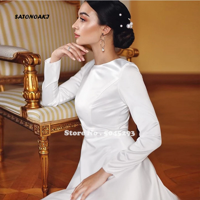 Атласное свадебное платье в стиле бохо, с длинным рукавом, высоким ...