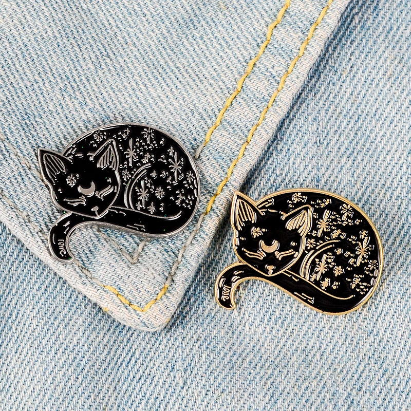 Броши-кошки GDHY черные с эмалью в виде Сейлор Мун, спящего кота, в...