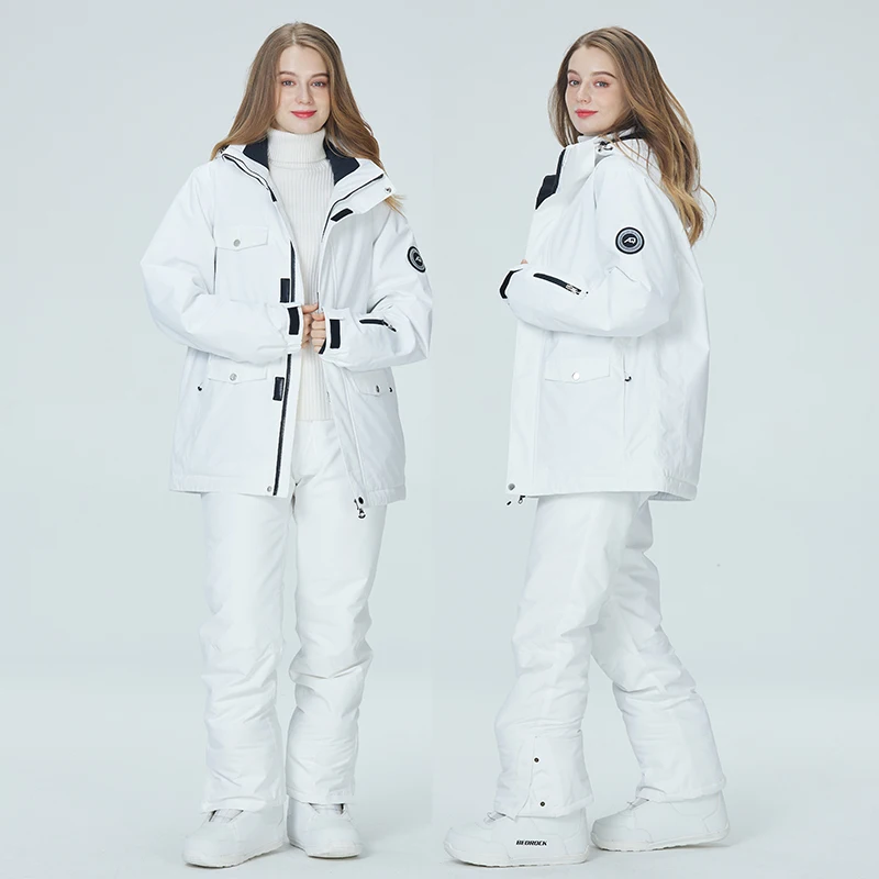 Костюм женский зимний из куртки и штанов, белого цвета, водонепроницаемый, ветрозащитный, для сноуборда, 10 к