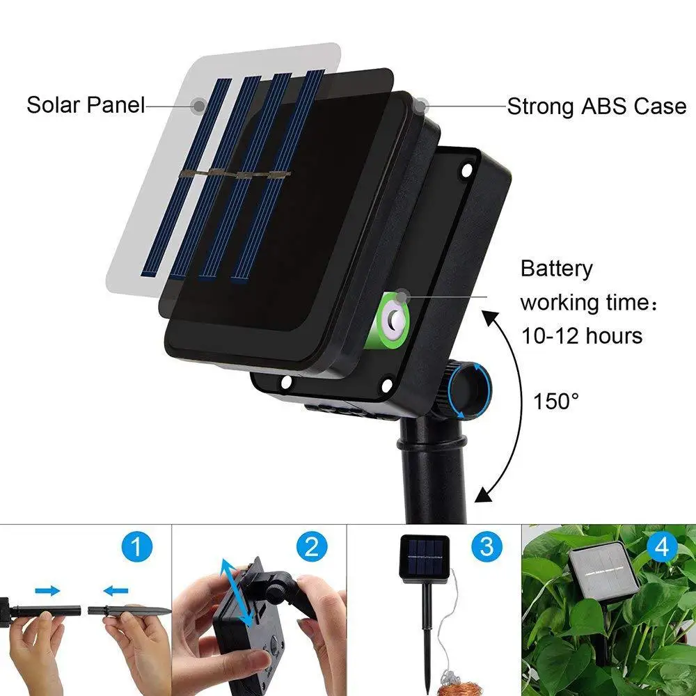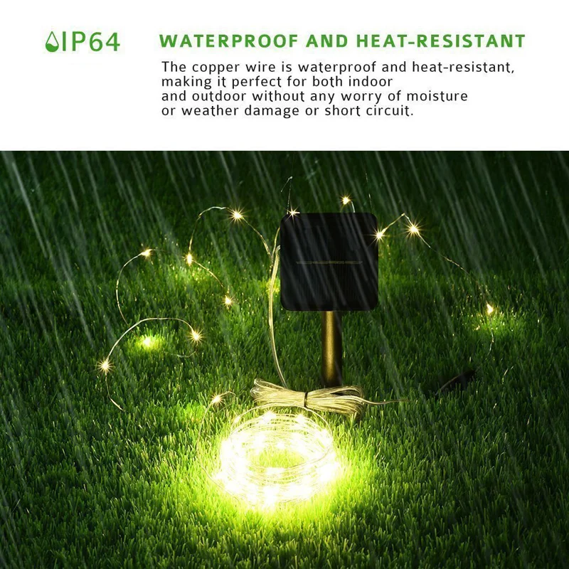 Руководство по эксплуатации:● Использование сцены: вы можете украсить терраса, терраса, крыльцо, семейную комнату, гостиную, кухню, любое место, которое вам нравится. Добавьте веселую романтическую атмосферу в вашу семью, вечеринки, свадьбы и т. д.● Модернизированные солнечные панели: питание от солнечной энергии, может работать до 8 часов после полной зарядки. Он автоматически загорается ночью и выключается в течение дня.● Водонепроницаемость: как струна, так и солнечная панель являются водонепроницаемыми IP68. Не беспокойтесь о том, чтобы использовать их в дождь. Но это предназначено только для предотвращения дождя. Пожалуйста, не погружайте его в воду.● Высококачественная, мягкая медная проволока: изготовлена из тонкой и мягкой медной проволоки и запутана с намоткой, чтобы избежать путаницы. Светильник на солнечной батарее (низкое напряжение, без трансформатора) легко хранить и может использоваться в следующий раз. Более того, он экологически чистый, преобразования высокой энергии, прочный и безопасный в использовании.● Простота в форме: гибкий медный провод может легко построить нужную вам форму; Окружить багажник или беседку; В темноте провод тускнеет, оставляя только яркий светильник.