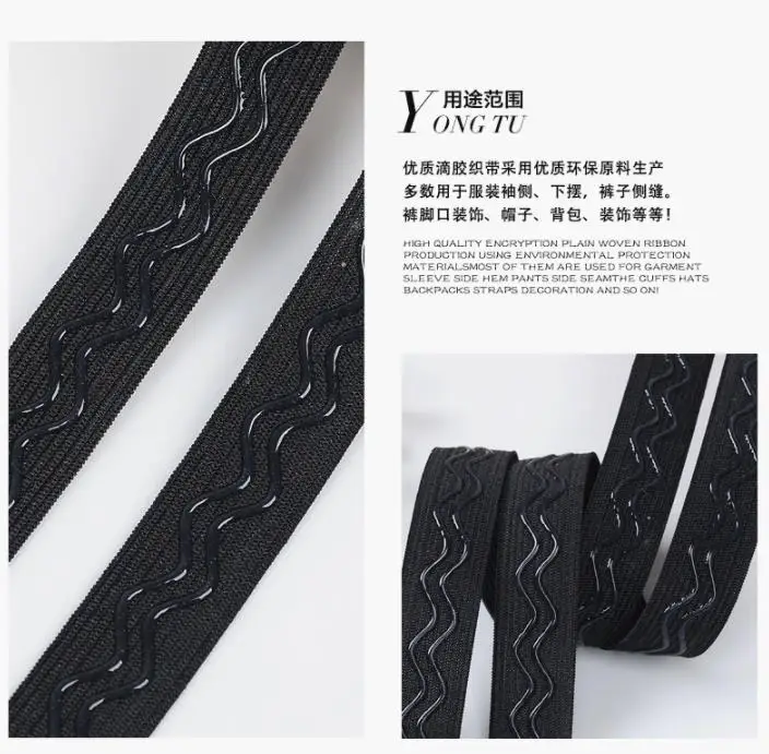 Нескользящая эластичная лента, черная или белая, 25 мм, 1 дюйм, волнистый Силиконовый эластичный пояс, сделай сам, спортивная одежда, наручные Аксессуары для шитья