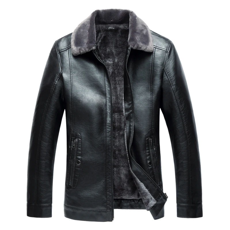 XL-8XL Зимняя новая мужская кожаная куртка и пальто высокого качества плюс бархат большого размера XL-8XL Удобная кожаная куртка среднего возраста из толстой кожи Мужские пальто