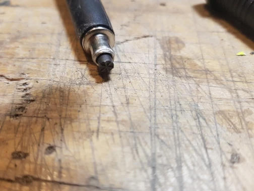 Как описано, хотя кажется, что диаметр маленький, стержень стержня входит, но не полностью и остается частью кончика отверстия, он не достигает конца, поэтому дает ощущение, что он может сломаться, если он зацепился за какой-то камень