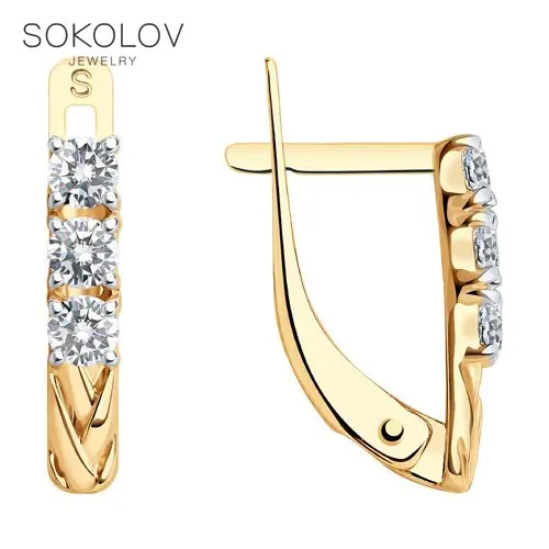 Серьги SOKOLOV из золота с фианитами, Золото, 585, Женские, Серьги 2022 тренд, Оригинальная продукция