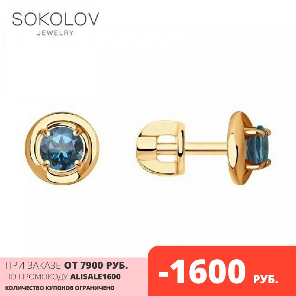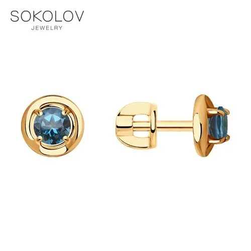 Серьги-пусеты SOKOLOV из золота с топазами, Золото, 585, Женские, Серьги 2021 тренд, Оригинальная продукция