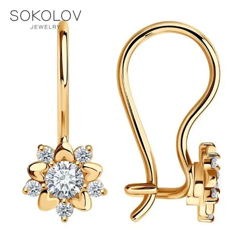 Серьги SOKOLOV из золота с фианитами, Золото, 585, Детские, Серьги ...