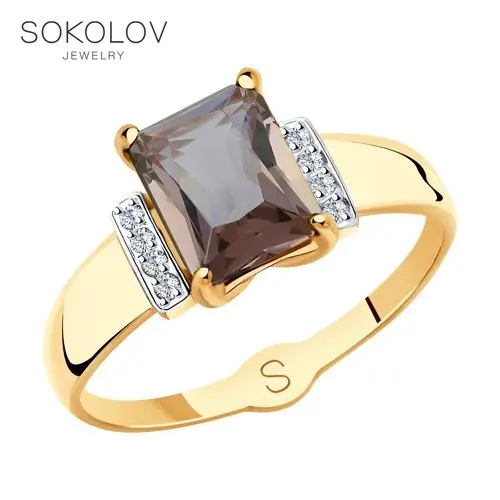 Кольцо SOKOLOV из золота с топазом и фианитами, Золото, 585, Женско...