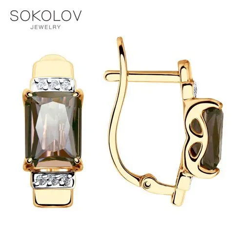 Серьги SOKOLOV из золота с ситаллом султанит и фианитами, Золото, 585, Женские, Серьги 2022 тренд, Оригинальная продукция