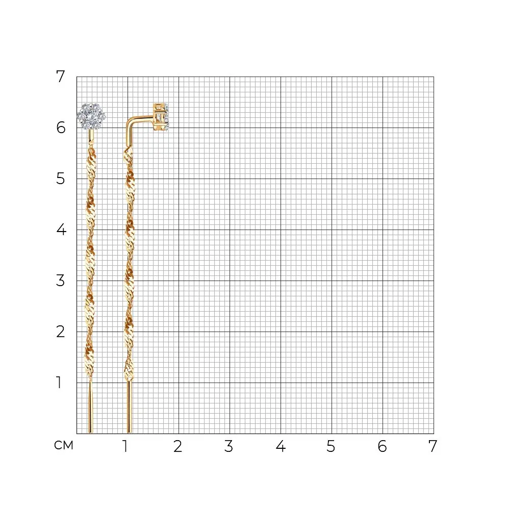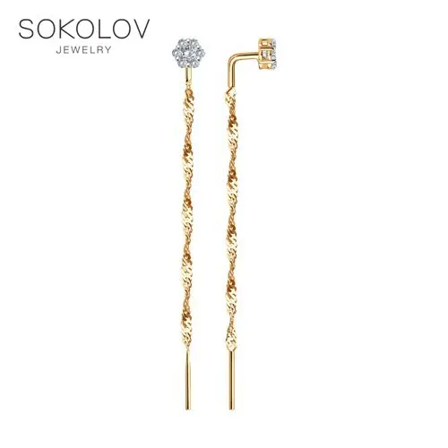 Серьги-цепочки SOKOLOV из золота с фианитами, Золото, 585, Женские, Серьги 2022 тренд, Оригинальная продукция
