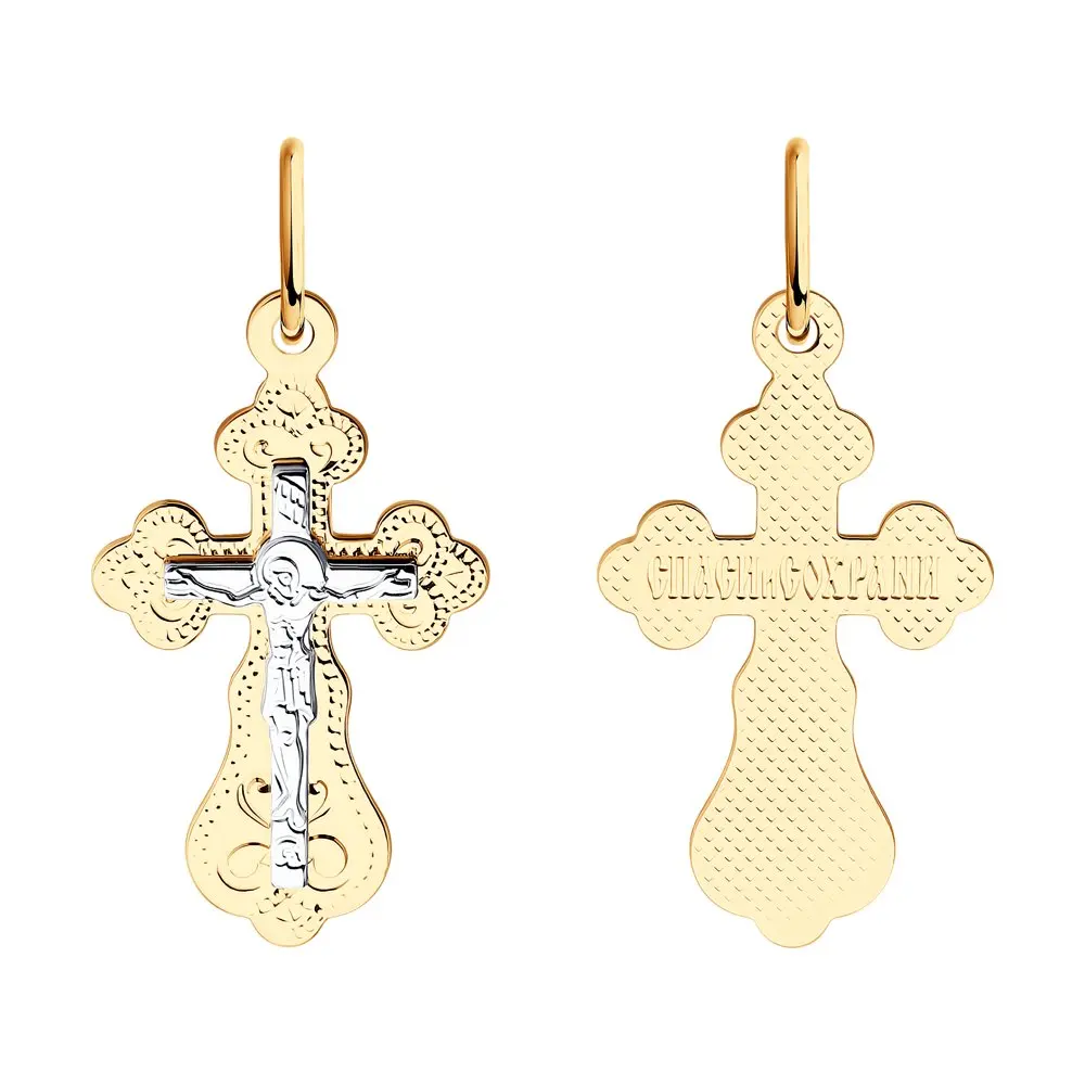 Крест SOKOLOV из комбинированного золота с гравировкой