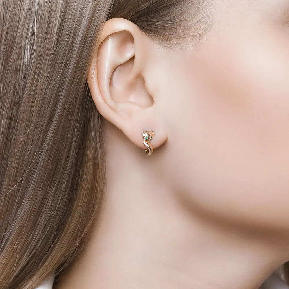 Детские серьги Лисички SOKOLOV, Золото, 585, Серьги 2022 тренд, Оригинальная продукция