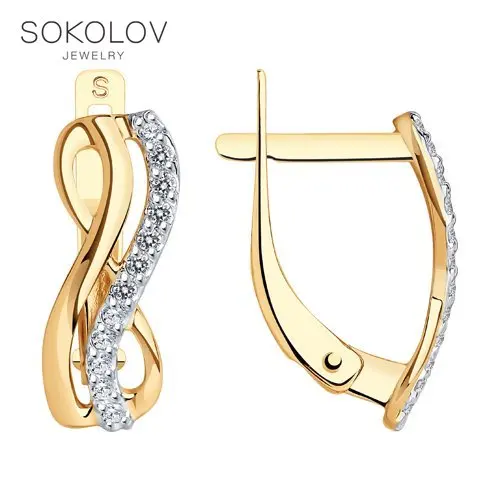 Серьги SOKOLOV из золота с фианитами, Золото, 585, Женские, Серьги 2022 тренд, Оригинальная продукция