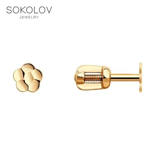 Серьги-пусеты SOKOLOV из золота с алмазной гранью, Золото, 585, Женские, Серьги 2022 тренд, Оригинальная продукция
