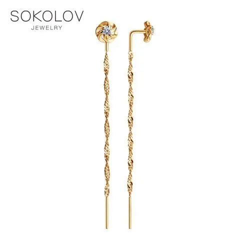 Серьги SOKOLOV из золота с фианитами, Золото, 585, Женские, Серьги 2022 тренд, Оригинальная продукция
