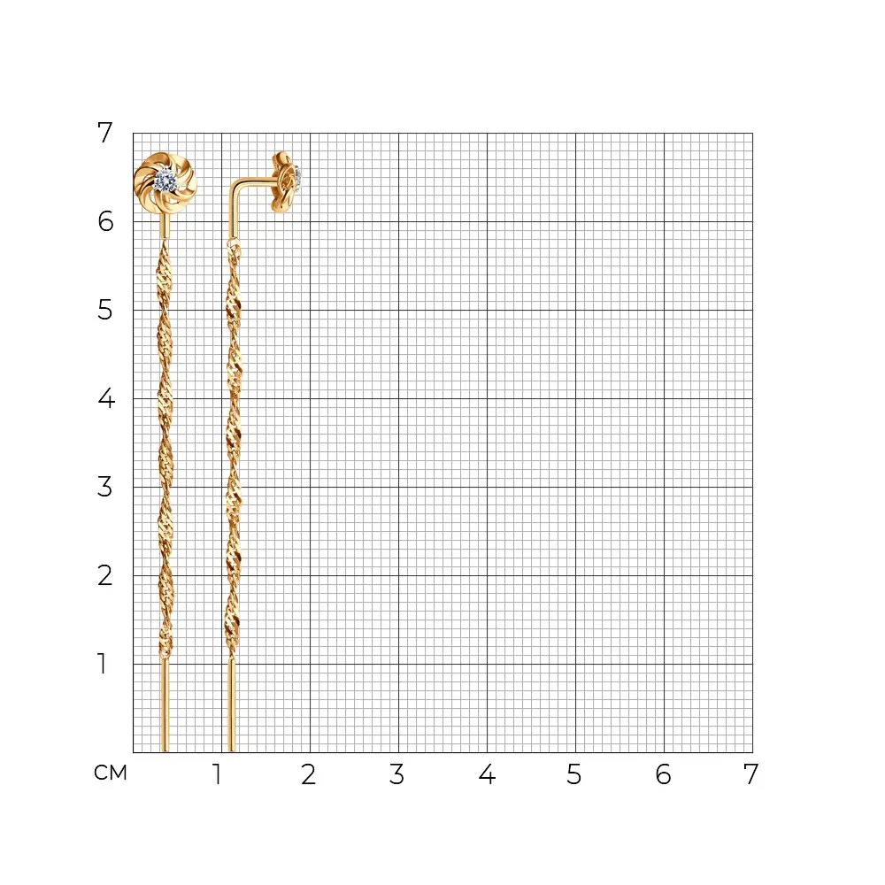 Серьги-цепочки SOKOLOV из золота с тремя фианитами, Золото, 585, Же...
