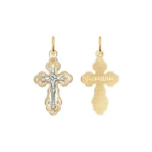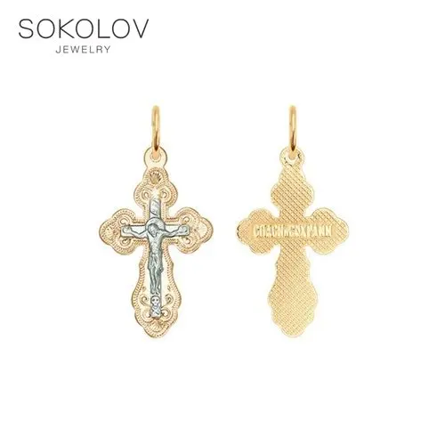 Крест SOKOLOV из комбинированного золота с гравировкой