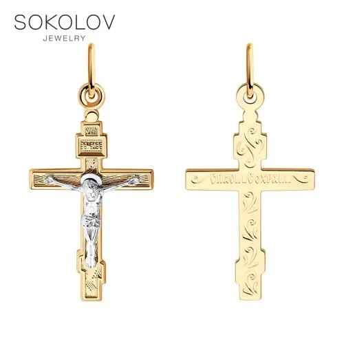 Крест SOKOLOV из комбинированного золота с гравировкой, Золото, 585...