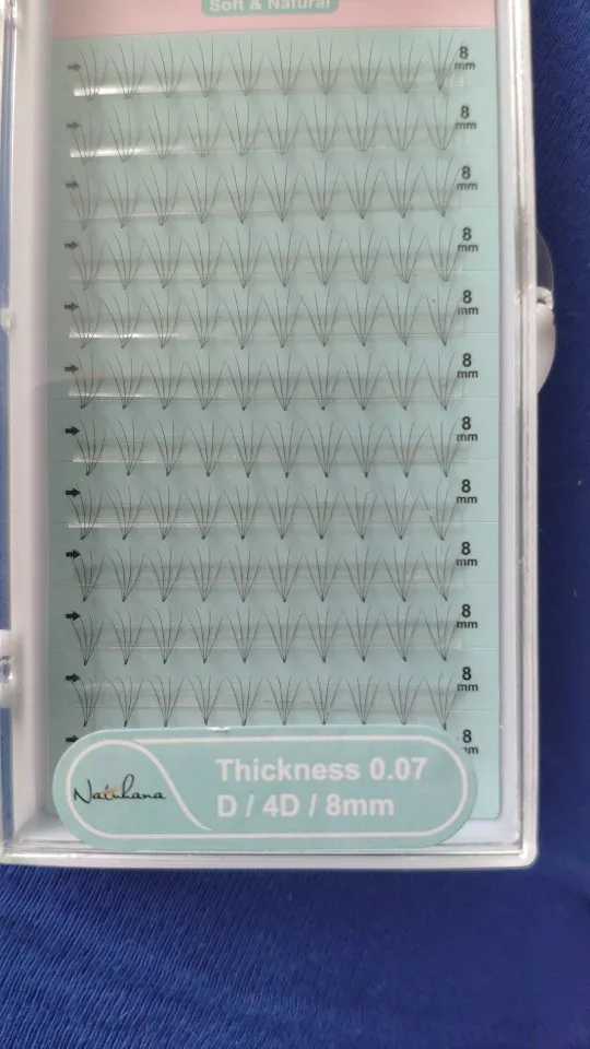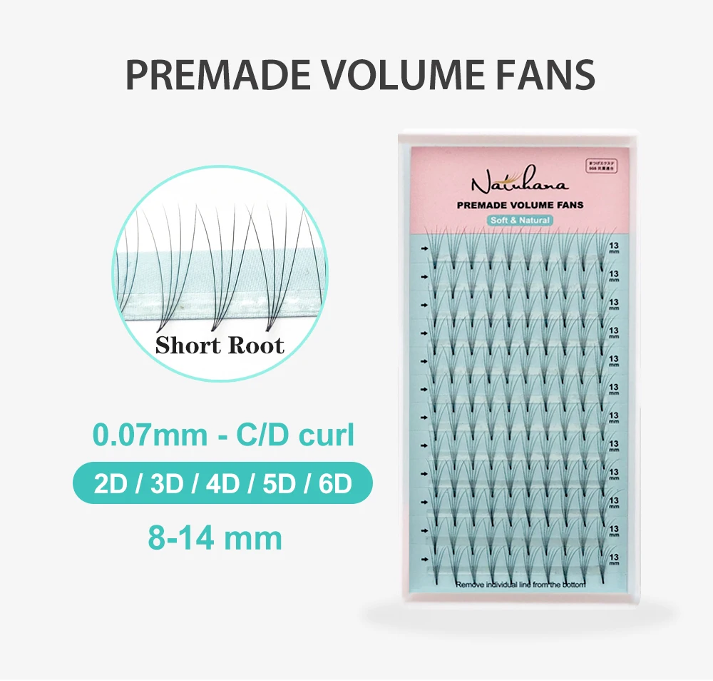 NATUHANA 2D 3D 4D 5D 6D предварительно сделанный русский объем веер наращивание ресниц русский объем предварительно сделанные вентиляторы ресницы наращиваниеЛокон: C,DТолщина: 0,07 ммДлина: 8 мм/9 мм/10 мм/11 мм/12 мм/13 мм/14 мм на выборШирокие вентиляторы NATUHANA 2d/3d/4d/5d/6d более открытые, чем обычные вентиляторы, поэтому наши широкие вентиляторы создадут мягкий и Пернатый общий вид. Наши широкие вентиляторы имеют очень маленькое тонкое дно, вентиляторы скреплены тепло, поэтому нет клея. Поэтому они очень хорошо соединяются с натуральными ресницами, а точки соединения ресниц бесшовные и выглядят очень естественно на глаза.