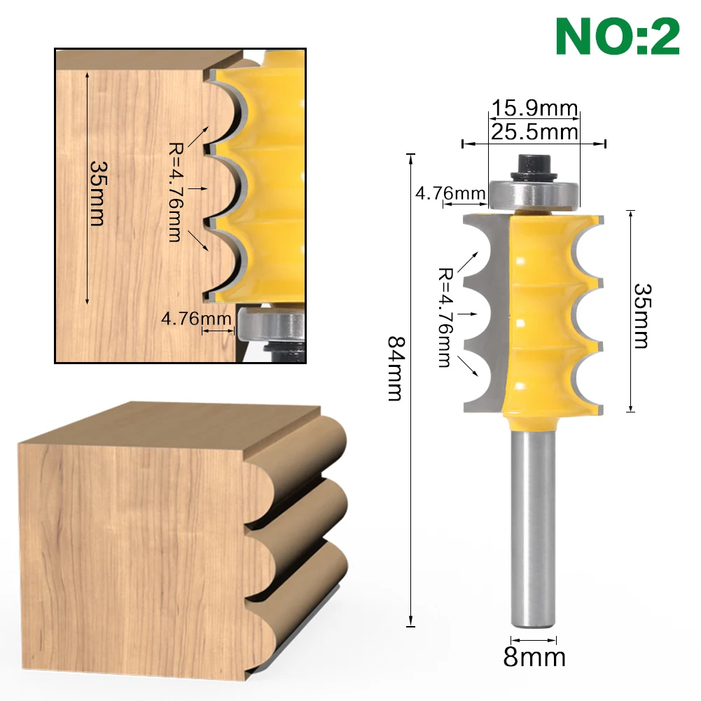 Комплект фрез с тройным хвостовиком 8 мм, 2 шт.