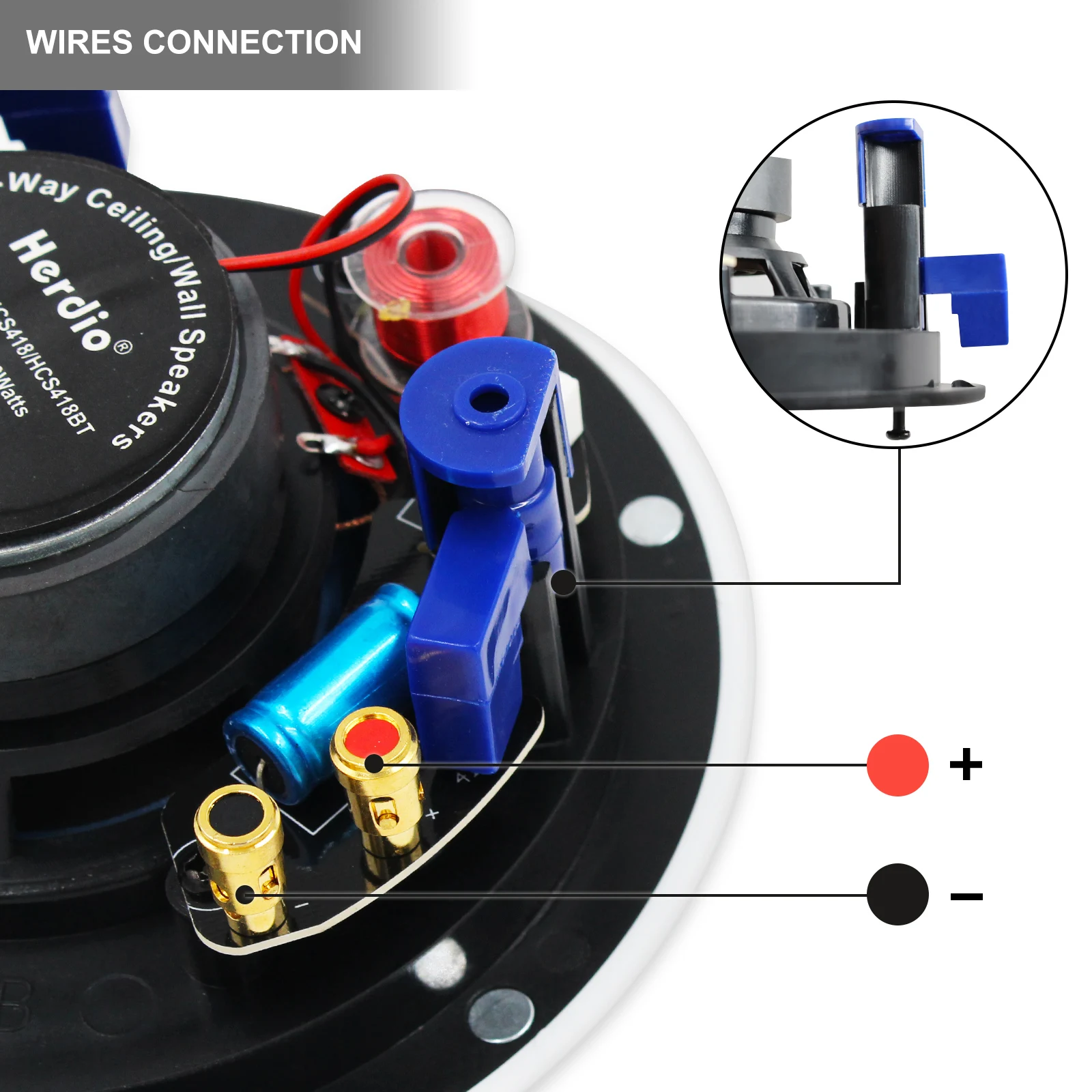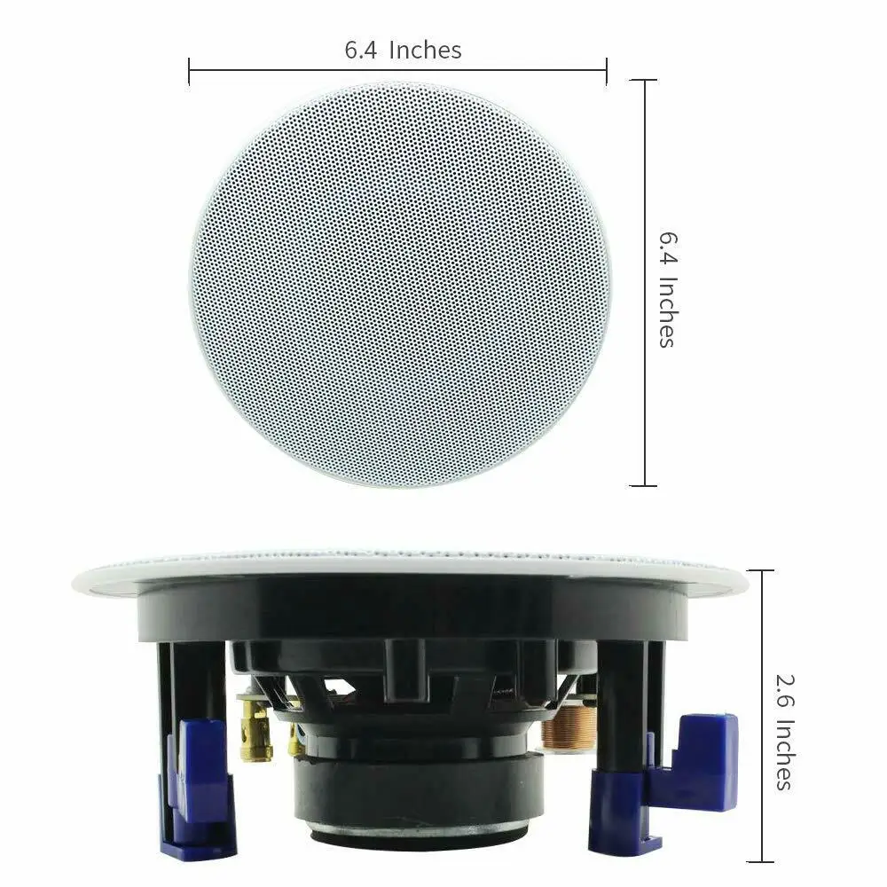 Особенности:Иногда известный как архитектурно-колонки, 4 "2 полосная АС использует стены или потолка, изготовленные на станке для того, чтобы создать гладкое дно несем ответственность за исключительный выше небольших отличиях тонов, И с стильом этого динамика ваш дом будет завидовать вам друзья. 4 "дюймов 2-полосная с Инжектированная-формованные полипропиленовая композитная Conefrom края с одиночным поворотный купольный твитер и огромный «вау» фактором! Предназначен для внутренних или потолочных применений.Herdio 4 дюймовые настенные потолочные колонки с BluetoothBLUETOOTH: независимая коробка цифрового усилителя Bluetooth приносит вам стерео звуковые эффекты. Обеспечивает беспроводную передачу музыки и удваивается в качестве цифрового усилителя для обработки звука. Вы сможете передавать аудио со всех ваших любимых устройств (например, смартфонов, планшетов и компьютеров)Конструкция крепления: компактная конструкция крепления для простой установки в стену/потолок, или предварительно вырезанные отверстия для динамиков, для домашнего использования, офиса, профессионального, или пользовательские аудио приложения на любой плоской поверхности.Кропотливые грили с магнитами: позволяет легко прикрепить или снять для быстрой установки. Большой крепежный Зажим С нескользящими протекторными захватами для потолков или стен для надежной установки. Нет необходимости в дорогостоящей профессиональной установкеМаксимальная мощность 160 Вт: потолочная акустическая система была тщательно объединена для четкого воспроизведения звука с выдающейся отзывчивостью. Полипропиленовый конус с резиновой кромкой поможет продлить срок службы продукта идеально подходит для пользовательских аудио приложенийКрепления на стене/скоб/потолков: общая Динамик Диаметр: 6,4 дюйма (16,2 см). Резным узором Диаметр: 5,7 дюйма (14,5 см). В общей сложности Динамик: материал подошвы: полиуретан Толщина 2,6 дюймов (6,5 см). Установочная глубина: 2,6 дюйма (6,5 см)