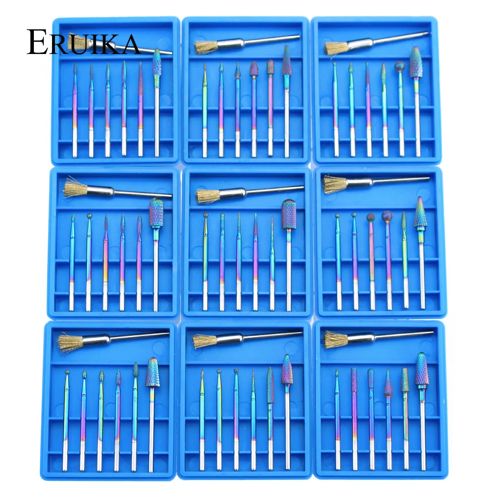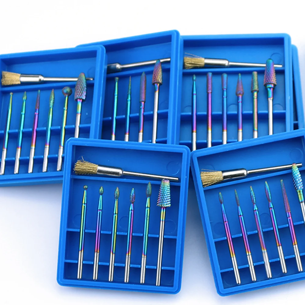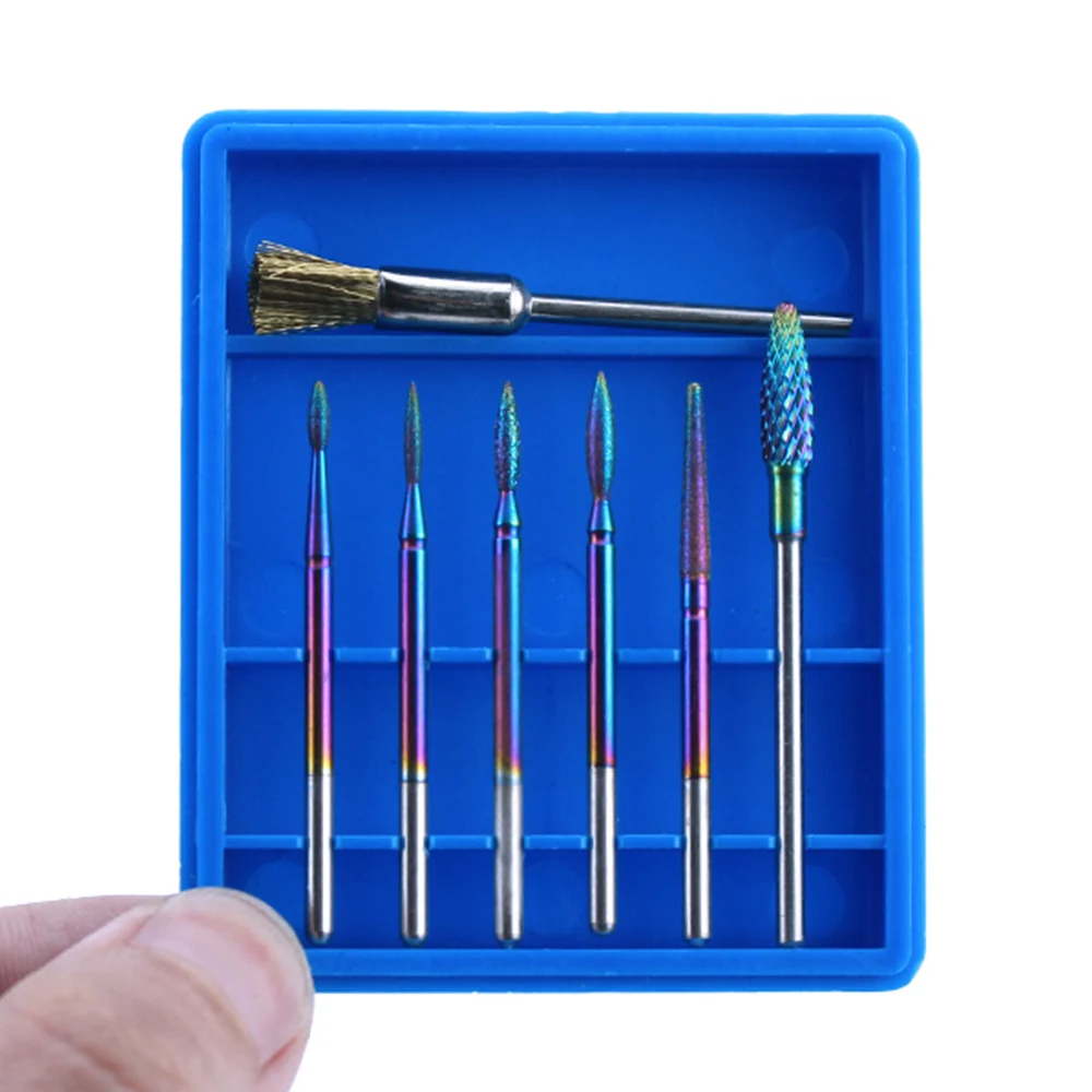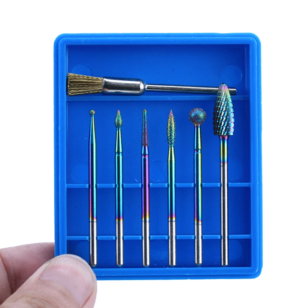 Набор из 7 шт. радужных твердосплавных фрез для ногтей, алмазные фрезы для электрического маникюра, вращающиеся Инструменты для удаления лака для ногтей