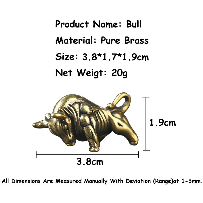 Брелок настенный из чистой латуни для мужчин, винтажный медный брелок с подвеской в виде быка, украшение в виде животного, кольцо-подвеска