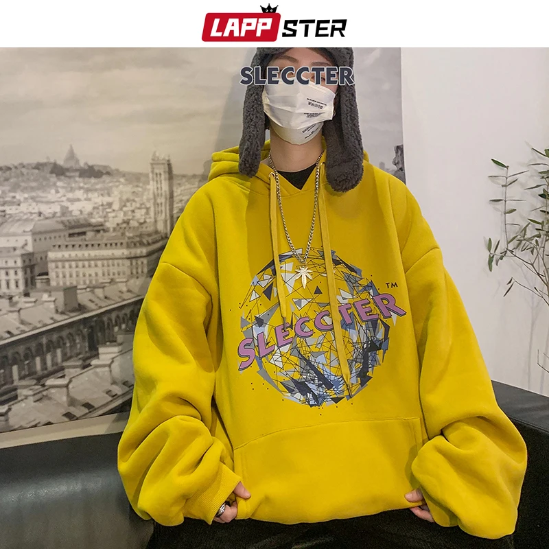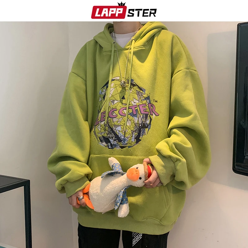 Толстовка LAPPSTER мужская с капюшоном, флисовый свитшот в стиле Харадзюку, оверсайз, уличная японская мода, серая корейский стиль, 2021