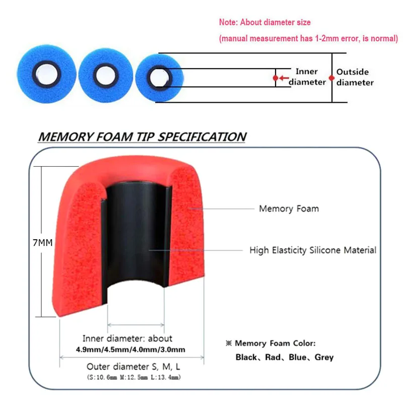 Описание продукта:1. Название: наушники-вкладыши из пены с эффектом памяти2. Высота 7 мм3. Технические характеристики: 4,9 мм4. Цвет: красный, синий, серый, черный5. Материал: Высококачественная инертная губка6. В комплект входит: пена с эффектом памяти