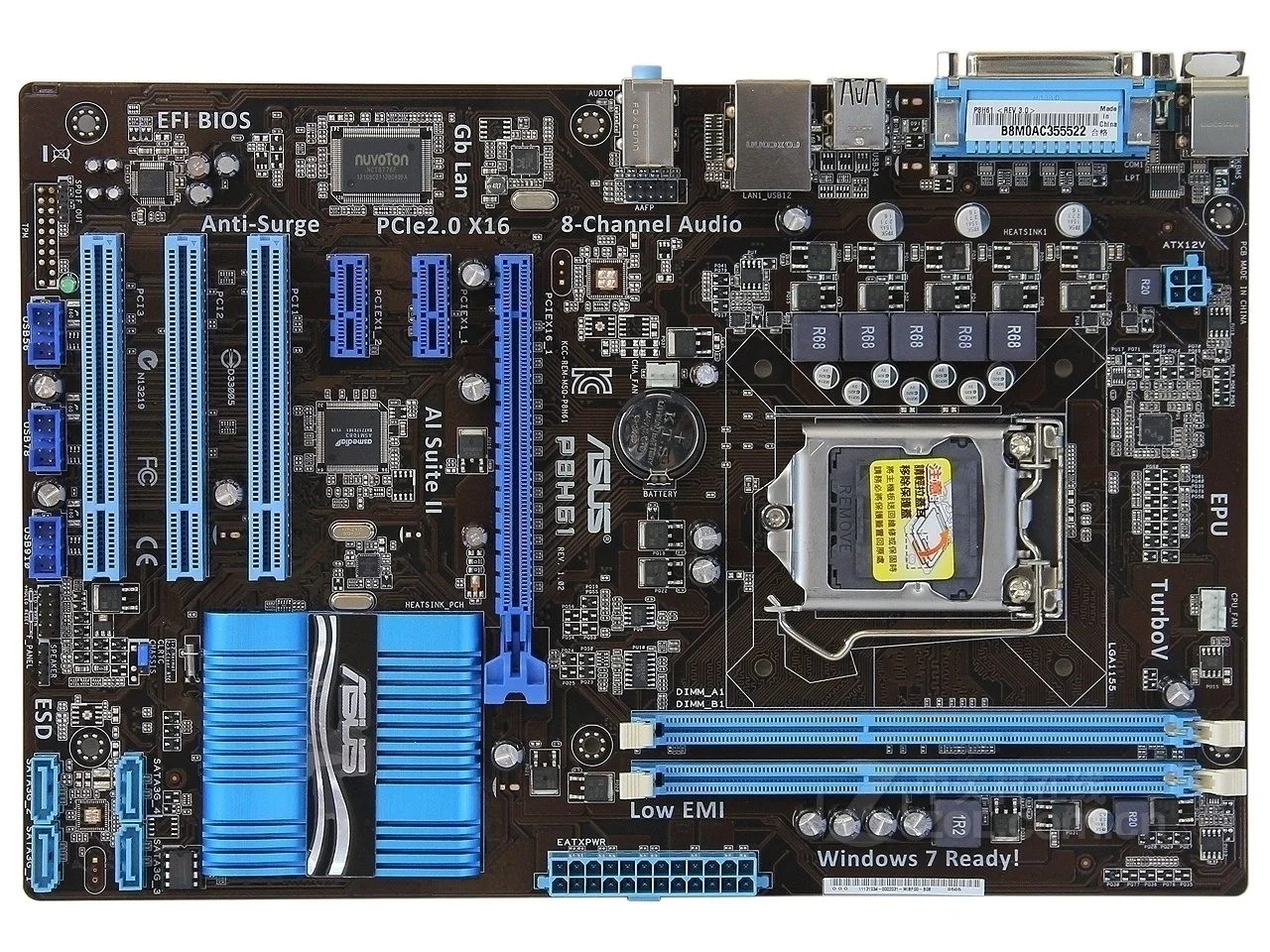 Для ASUS P8H61 ПараметрыМатеринская плата чипИнтегрированному чипуЗвуковая карта/Сетевая картаОсновной чипсетДля Intel H61Чипсет ОписаниеДля Intel H61 чипсетДисплей чипНетЗвуковой чипИнтегрированный Realtek ALC887 8-канальный звуковой чипNIC чипБортовой Realtek RTL8111E гигабитная LANСпецификации процессораПроцессор ТипCore i7/ i5/i3/CeleronПроцессор слотLGA 1155Процессор ОписаниеПоддержка процессора Intel 32nmСлот памяти:Тип памятиDDR3Слот для карт памяти2 x DDR3 DIMMМаксимальный объем памяти16 ГбОписание памятиПоддержка двухканальной DDR3 1333/1066 МГцСлот расширенияГрафика разъем карты1 слот для видеокарты PCI-E X16, 2 слота PCI-E X1, Разъем PCI3 x PCI слотИнтерфейс хранения4 ×sata II интерфейсИнтерфейс ввода/выводаUSB интерфейс10 × USB2.0 интерфейсМощность разъем4-pin, 24-pin разъем питанияPS/2 интерфейсPS/2 мышь, PS/2 интерфейс клавиатуры, 1 × сетевой интерфейс RJ45, аудио интерфейсТип пластиныОсновная плата типаATXРазмеры30,5 × 20,3 смПрограммное обеспечение для УправлениеBIOS производительность32 Мб флэш-памяти, EFI BIOS, PnP, DMI v2.0, WfM2.0, SMBIOS v2.6, ACPI v2 0a, многоязычная BIOSДругое Особенности Поддержка Turbo Boost2.0 технологии