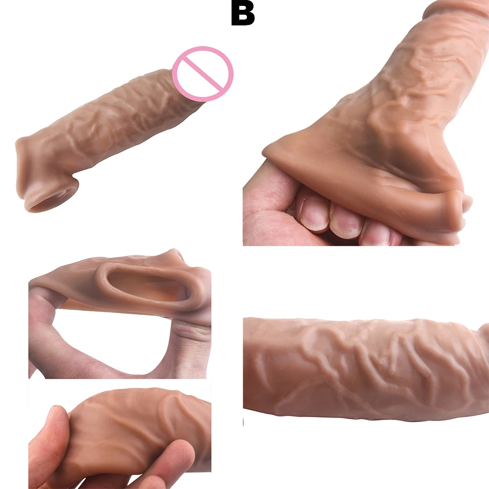 Многоразовый силиконовый фаллоимитатор 200 мм, презерватив для увеличения пениса, реалистичный мужской презерватив, интимные товары