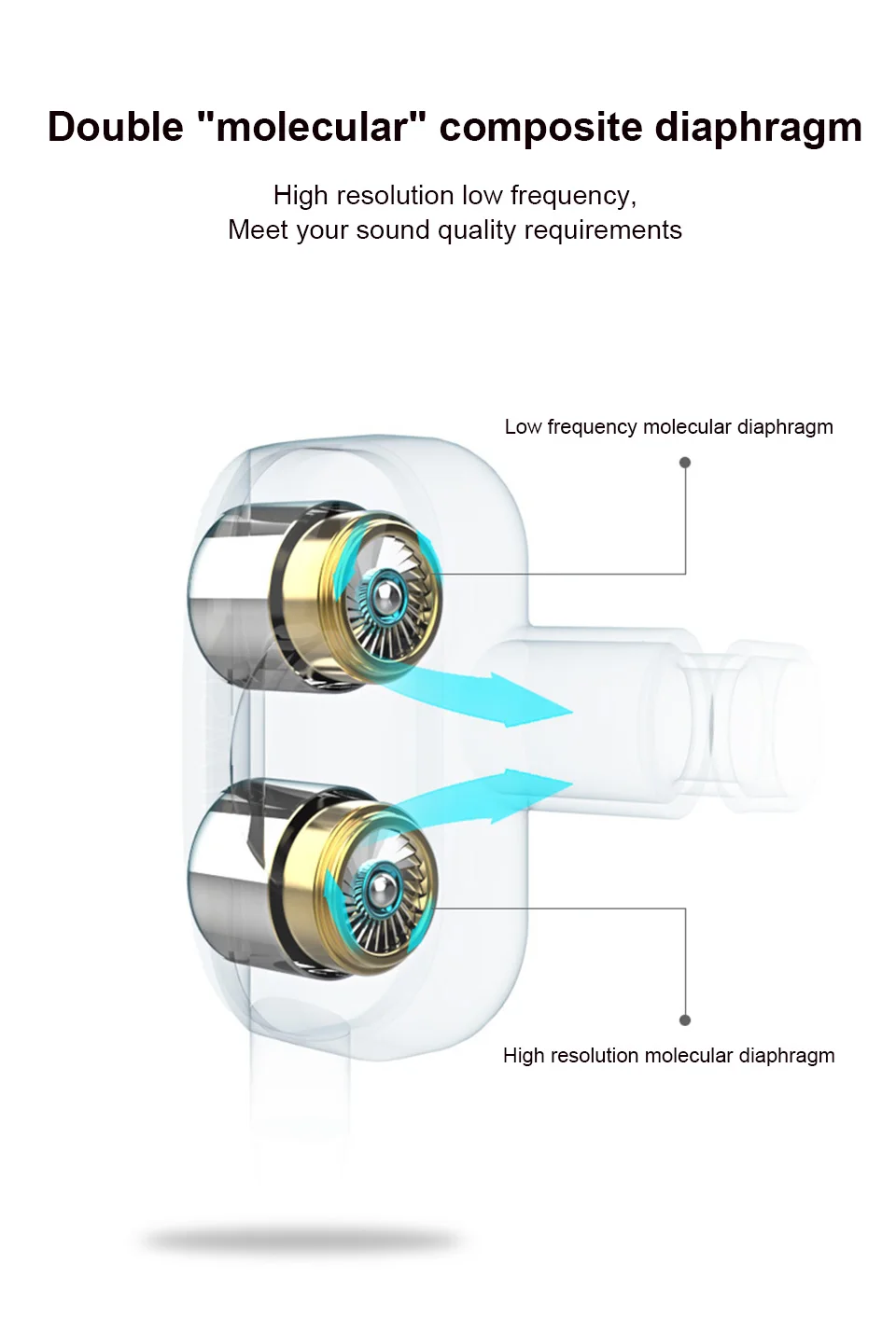 Проводная гарнитура с двойной подвижной катушкой, двойной динамик, ...