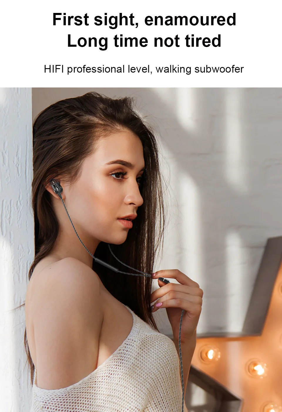 Проводные наушники, гарнитура 6D с двойным приводом, Спортивная сте...