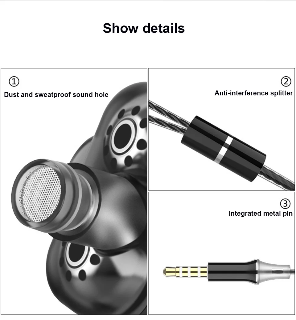 Двойной привод стерео проводные наушники-вкладыши спортивная гарнит...