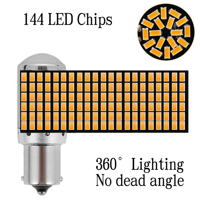 2 шт. автомобильный сигнал поворота светильник s фонарь стоп-сигнала с 144 SMD 3014 Светодиодный светильник шарик ошибок нет Hyper Flash 1156 BAU15S P21W желтый светильник