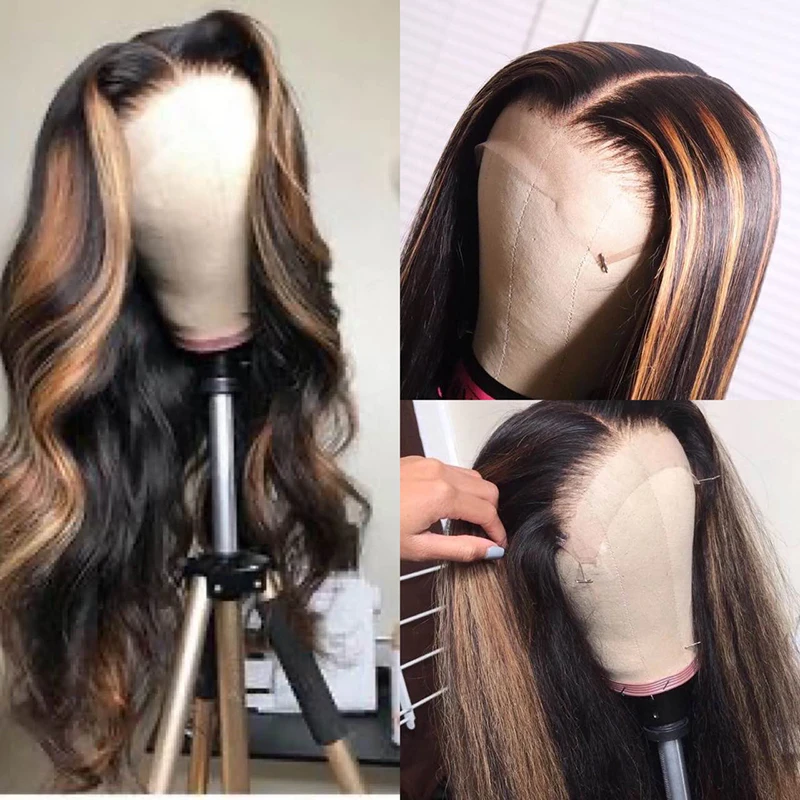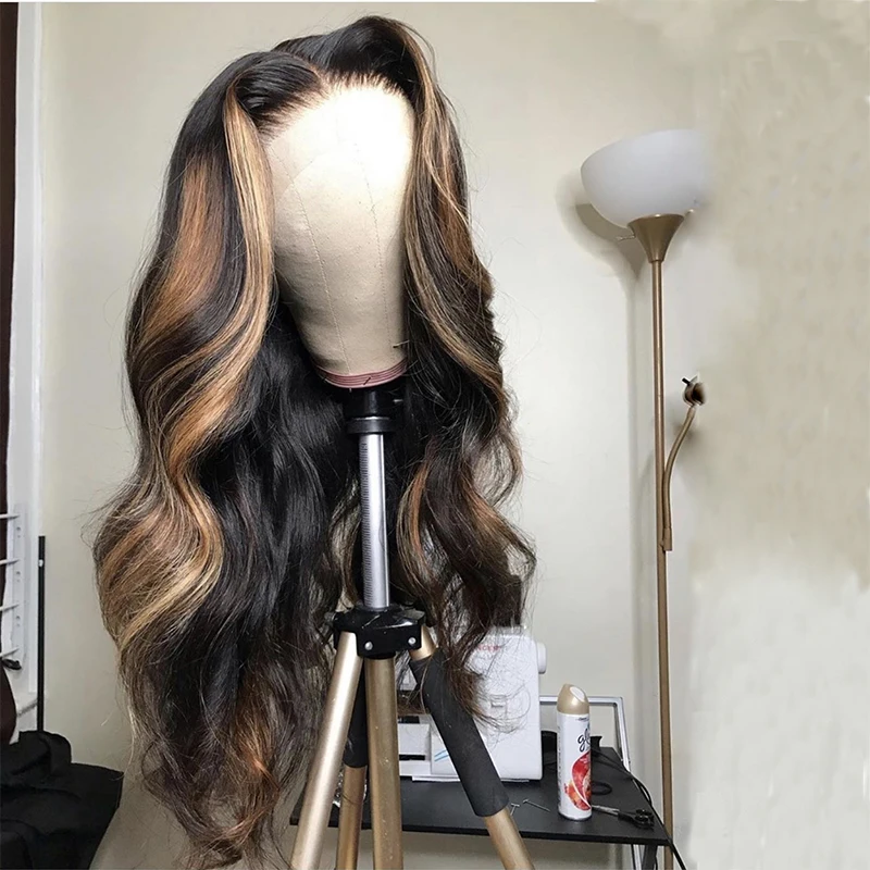 Парик омбре с коричневыми волнами, фронтальные человеческие волосы ...